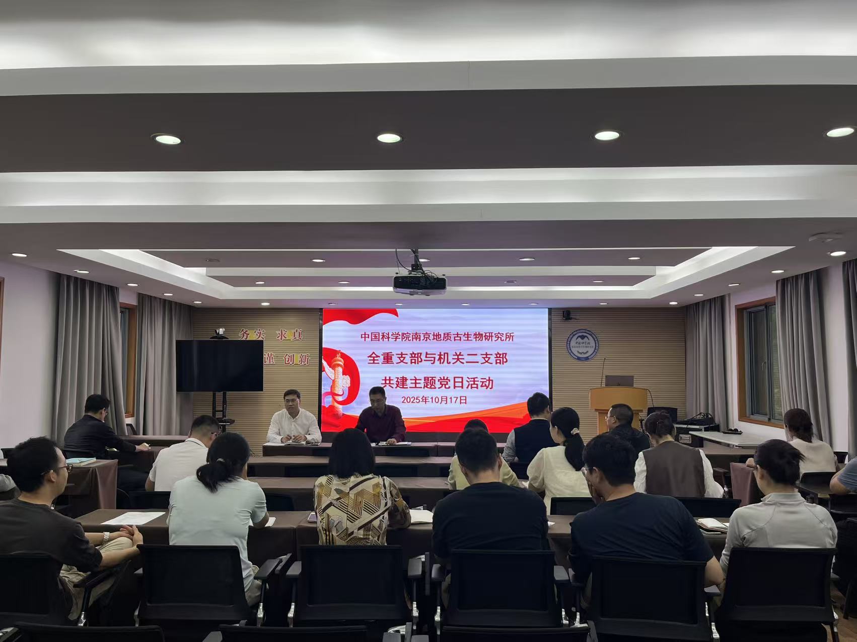 10月17日,中国科学院南京地质古生物研究所全国重点实验室党支部与机关第二党支部以“学思想 强保密 严纪律 固堡垒”为主题联合开展支部活动。支部近30名在宁党员参会,科技处相关人员列席会议?;嵋橛扇氐持Р渴榧峭醪┲鞒?/span>。
