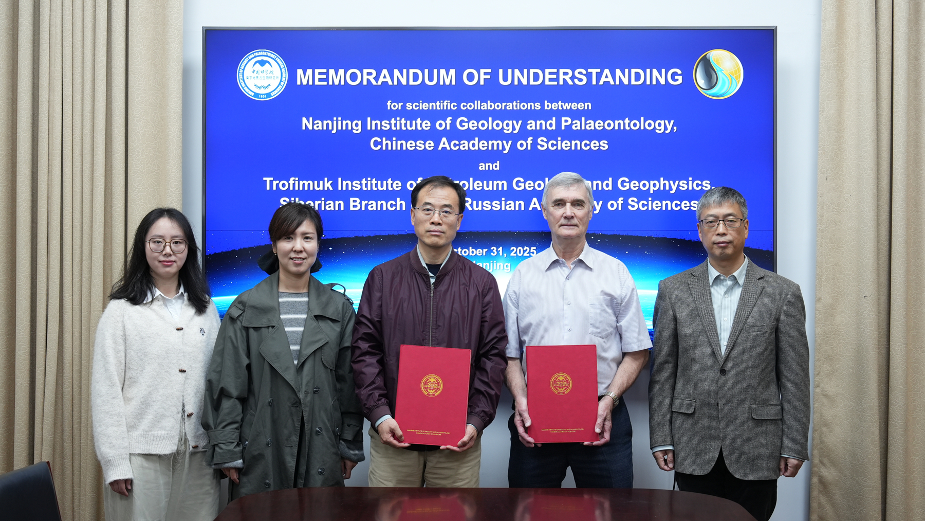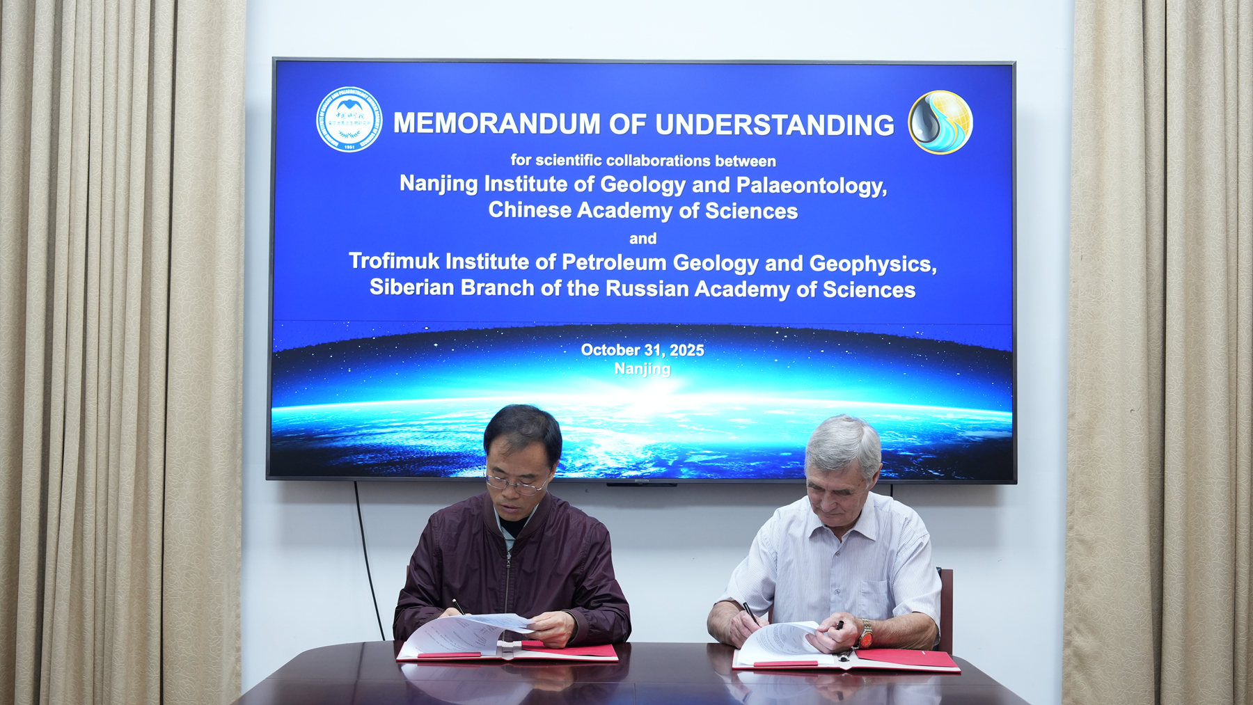 10月31日,中国科学院南京地质古生物研究所与俄罗斯科学院西伯利亚分院特罗菲穆克石油地质与地球物理研究所续签科学合作备忘录。南京古生物所所长王军和特罗菲穆克石油地质与地球物理研究所教授Nikolay Sennikov分别代表双方研究所完成签约,并分别回顾了双方单位的机构历史、优势研究方向及既有合作成果。